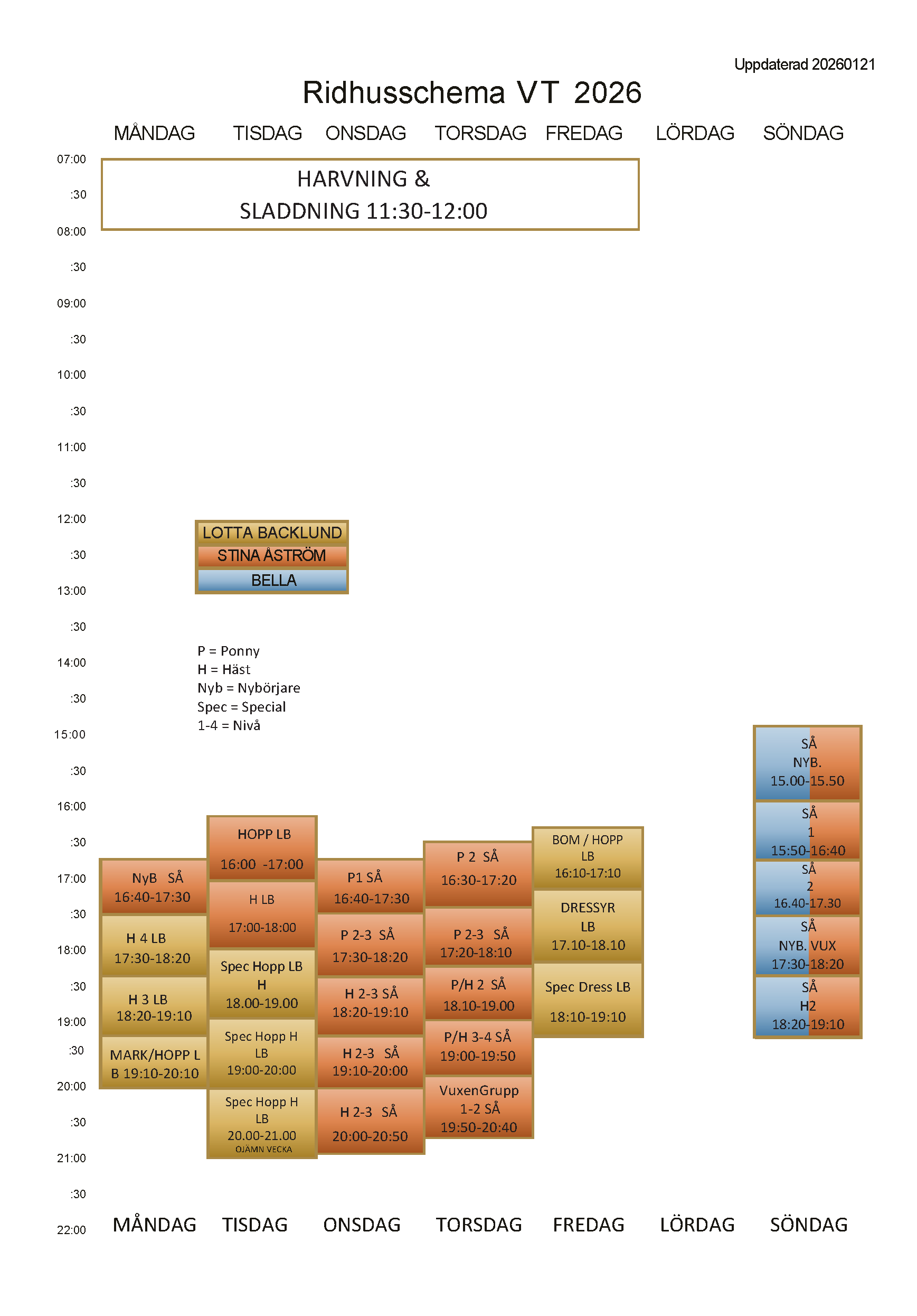 Ridhusschema VT 2026 Uppdaterat 2026-02-15 Här kan du läsa våra RIDHUSREGLER. Här kan du skriva ut RIDHUSSCHEMAT FÖR VT 2026